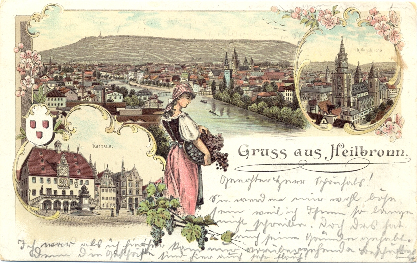 Heilbronn, Farb-Litho, 1908 von Heilbronn nach Offenbach am Main versandt, leicht eckbestossen, sonst ordentliche Erhaltung.