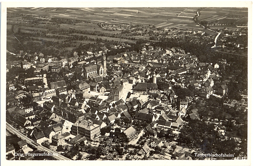 Tauberbischofsheim, Fliegeraufnahme, 30er Jahre, postalisch gelaufen, gute Erhaltung.