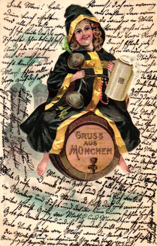 München, Münchner Kindl, Prägekarte, 1900 von München nach Fürth versandt, hübsche Karte in guter Erhaltung.