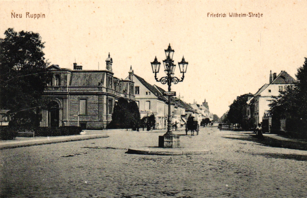 Neuruppin, Friedrich Wilhelm Strasse, um 1910/20, nicht beschriftet, nicht gelaufen, kleine Stockpunkte, insgesamt aber noch ordentliche Erhaltung.