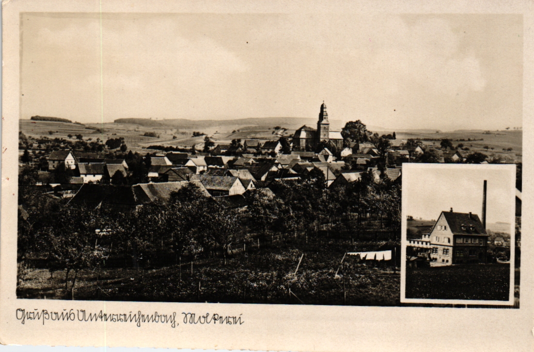 Birstein – Unterreichenbach, Gesamtansicht und Molkerei, ca. 30er Jahre, nicht beschriftet, nicht gelaufen, gering eck- bzw. randbestossen, sonst ordentliche Erhaltung.