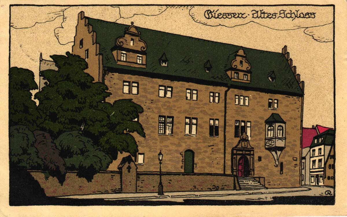 Giessen, Altes Schloss, Steindruck-AK, 1924 nach Bad Schandau versandt, nur kleine Altersspuren.