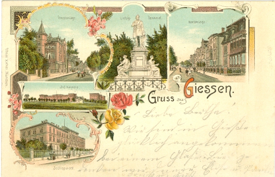 Giessen, Farb-Litho, 1902 in Giessen versandt, Ankunftstempel von Nidda, gute Erhaltung.