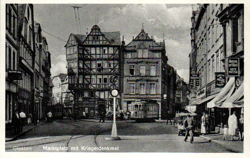 Giessen, Marktplatz mit Kriegerdenkmal, 1940 von und nach Giessen versandt, einwandfreie Erhaltung.