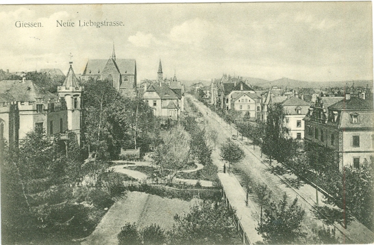 Giessen, Neue Liebigstrasse, 1913 postalisch gelaufen, links unten etwas größerer Bug, sonst gute Erhaltung.