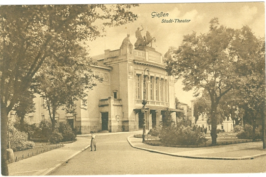 Giessen, Stadt-Theater, 1913 postalisch gelaufen, nur sehr geringe Altersspuren.