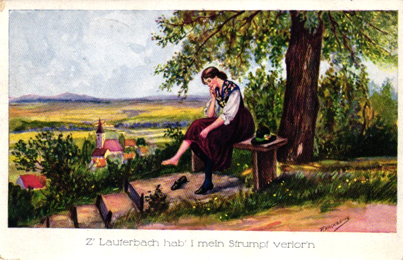 Lauterbach / Oberhessen, „Z`Lauterbach hab i mein Strumpf verlor`n“, ca. 20er Jahre, postalisch gelaufen, Briefmarke entfernt, rückseitig kleine Papierschürfstelle, etwas eckbestossen, leichte Altersspuren, jedoch sammelwürdige Erhaltung.