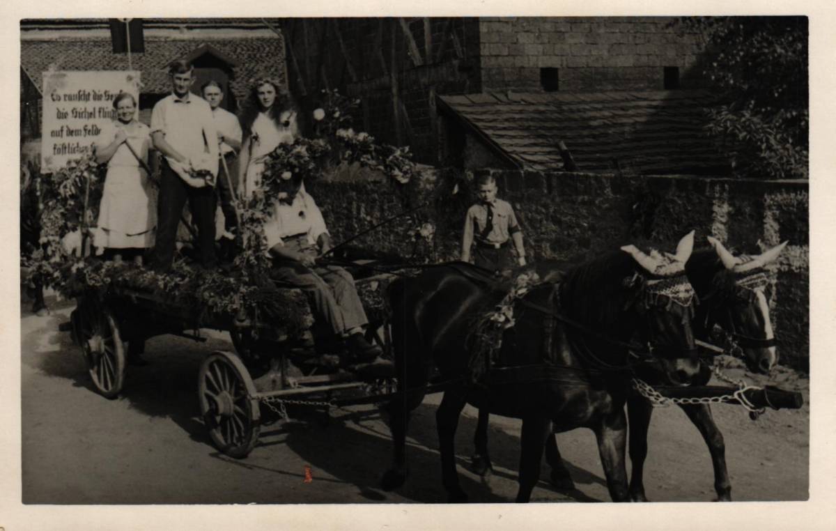 Linsengericht – Altenhaßlau, Erntedankfest, um 1940, rückseitig lediglich mit „Erntedankfest in Altenhaßlau“ beschriftet, nicht postalisch gelaufen, seltene Karte in einwandfreier Erhaltung.