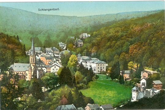 Schlangenbad, Gesamtansicht, um 1910, nicht beschriftet, nicht gelaufen, nur minimale Altersspuren.