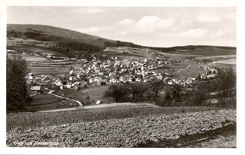 Sinntal – Züntersbach, Gesamtansicht, 1957 von Züntersbach nach Bad Orb versandt, nur sehr geringe Altersspuren.