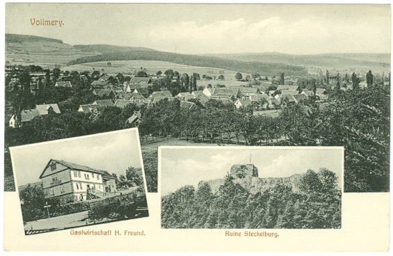 Vollmerz b. Schlüchtern, m. Druckfehler „Vollmery“, mit Gastwirtschaft H. Freund, um 1910/20, nicht beschriftet, nicht gelaufen, gute Erhaltung.