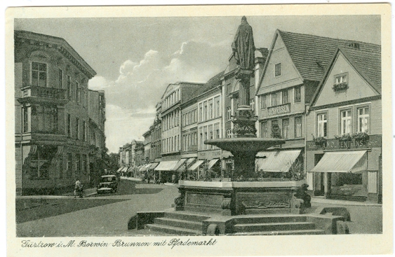Güstrow, Borwin Brunnen m. Pferdemarkt, um 1940, nicht beschriftet, nicht gelaufen, rückseitig am Rand stärkere Anhaftespur aus der ehemaligen Albumbefestigung, sonst ordentliche Erhaltung.
