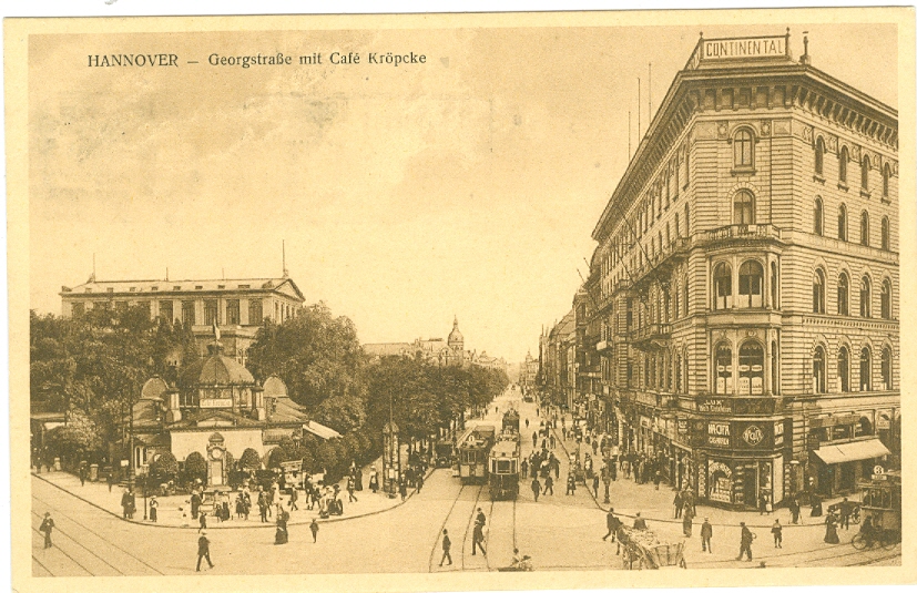 Hannover, Georgstrasse mit Cafe Kröpcke, 1925 postalisch gelaufen, gute Erhaltung.