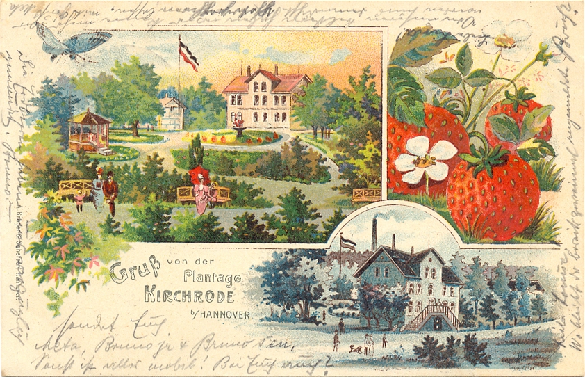 Hannover – Kirchrode, Plantage, Farb-Litho, 1901 postalisch gelaufen, schöne AK mit Erdbeeren, einwandfreie Erhaltung.