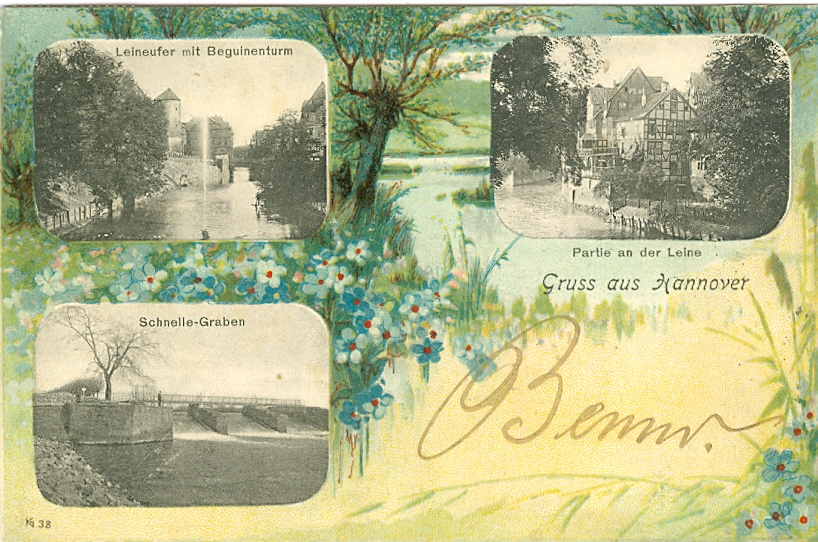 Hannover, Mehrbild Künstler-AK, 1900 postalisch gelaufen, schöne Hannover AK, oben rechts Eckbug, vorderseitig nur wenig sichtbar, sonst nur geringe Altersspuren.