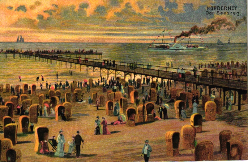 Norderney, „Der Seesteg“, um 1900/05, nicht beschriftet, nicht gelaufen, schöne Karte in guter Erhaltung.