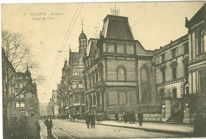 Bochum, Rathaus und Hotel de Ville, um 1910 postalisch gelaufen, kleine Altersspuren, rückseitig am Rand etwas unsauber.