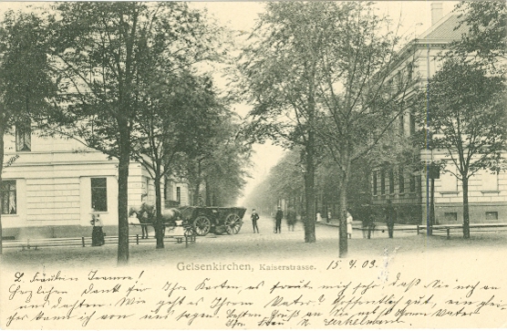 Gelsenkirchen, Kaiserstrasse mit Kutsche, 1903 postalisch gelaufen, unten rechts kleine unauffällige Schürfung, sonst einwandfreie Erhaltung.