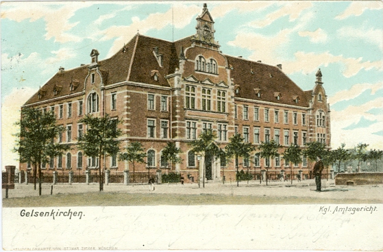 Gelsenkirchen, Kgl. Amtsgericht, 1907 postalisch gelaufen, kleiner Eckbug, kleine Altersspuren.