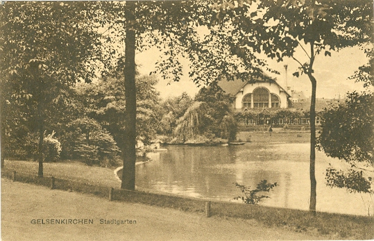 Gelsenkirchen, Stadtgarten, um 1910/20, rückseitig beschriftet, nicht postalisch gelaufen, nur geringe Altersspuren.
