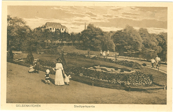 Gelsenkirchen, Stadtpark, Mutter mit Kindern, um 1930, nicht beschriftet, nicht gelaufen, gute Erhaltung.