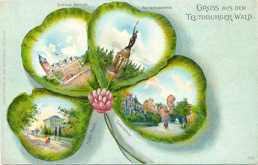 Teutoburger Wald, Kleeblatt-Litho, um 1900/10, nicht beschriftet, nicht gelaufen, minimal eckbestossen, sonst einwandfreie Erhaltung.