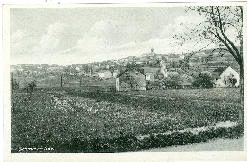 Schmelz, Gesamtansicht, ca. 40er Jahre, nicht beschriftet, nicht gelaufen, nur kleine Altersspuren.