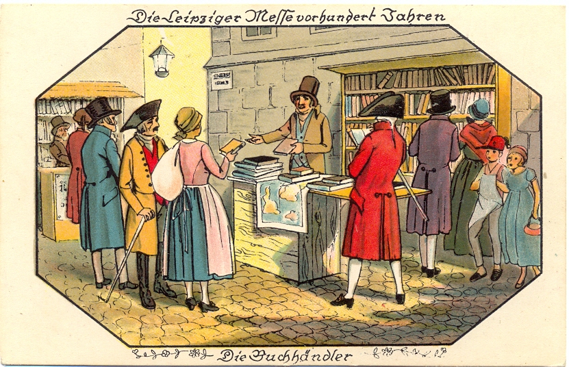 Leipzig, „Leipziger Messe vor 100 Jahren“, Farb-Litho, um 1900, nicht beschriftet, nicht gelaufen, einwandfreie Erhaltung.