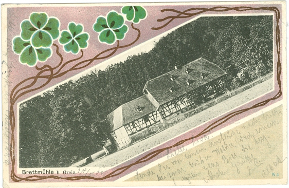 Greiz / Brettmühle, Jugendstil AK, 1900 von Greiz nach Dresden versandt, leichter Eckbug, nur kleinere Altersspuren, schöne AK !