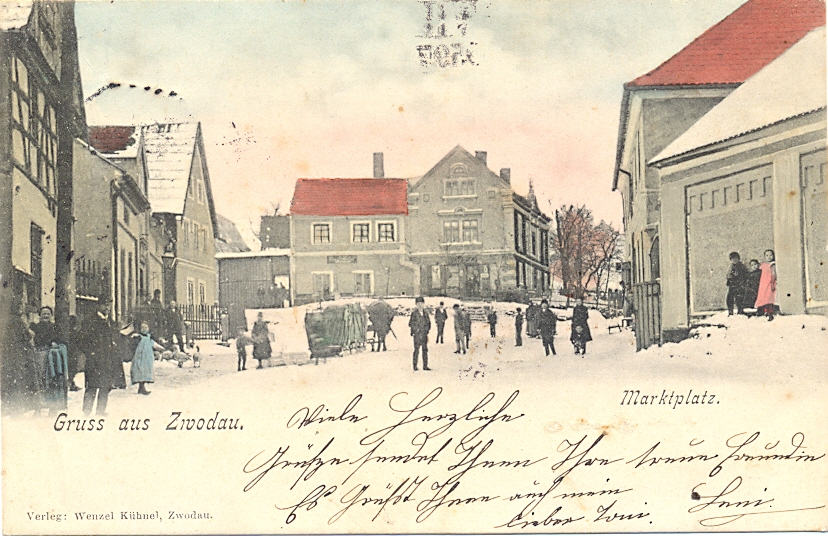 Zwodau b. Falkenau, Marktplatz, 1905 postalisch gelaufen, etwas Stempelspuren vorderseitig, sonst nur geringe Altersspuren.