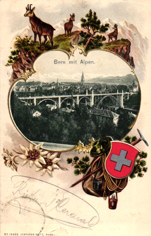 Bern, Wappen-Präge-AK, 1903 von Bern nach Graz versandt, leichter Eckbug oben rechts, sonst ordentliche Erhaltung.