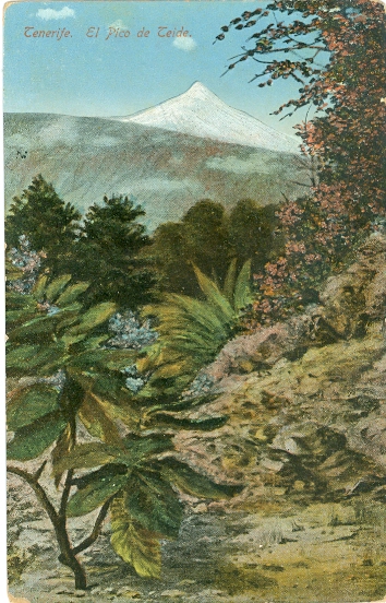 Teneriffa, El Pico de Teide, um 1910, nicht beschriftet, nicht gelaufen, etwas stärker eckbestossen, rückseitig kleine Anhaftestelle und etwas unsauber.