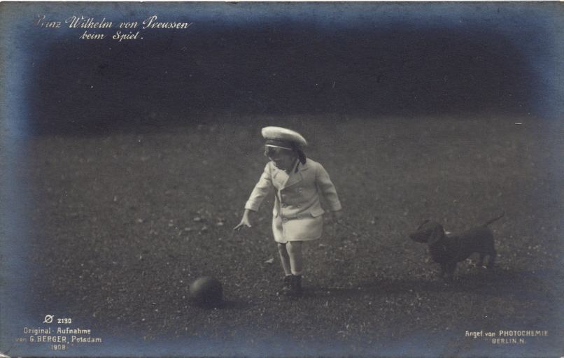 Prinz Wilhelm von Preussen als Kind mit Ball u. Dackel, nicht beschriftet, nicht gelaufen, nur kleinere Altersspuren.