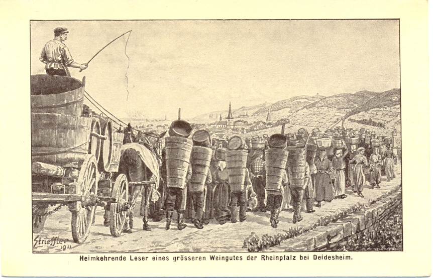Weinlese, heimkehrende Weinleser bei Deidesheim, um 1930, nicht beschriftet, nicht gelaufen, nur sehr geringe Altersspuren.