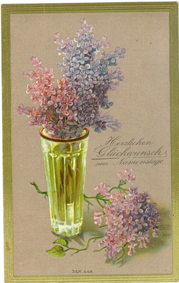 Namenstag, Blumen, Vase, Prägekarte, 1909 postalisch gelaufen, winzig eckbestossen, unten links kleiner Randfleck.
