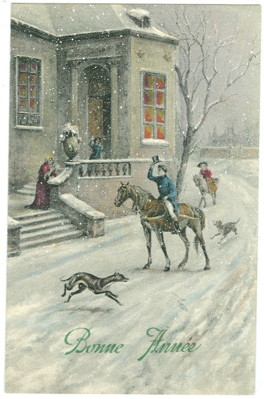 Neujahr, Reiter, Pferd, Hunde, um 1900/10, nicht beschriftet, nicht gelaufen, schöne Karte in ordentlicher Erhaltung.