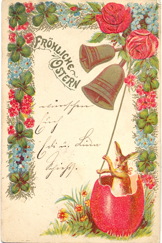Ostern, Hase läutet Glocken, Prägekarte, 1902