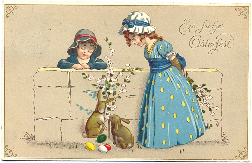 Ostern, Kinder, Hasen, 1913, postalisch gelaufen, nur kleinere Altersspuren, hübsche Karte.