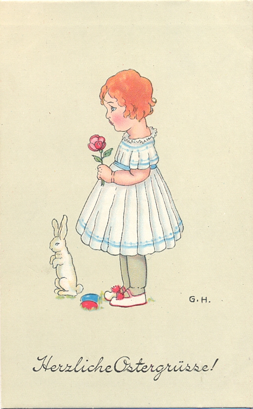Ostern, Mädchen mit Hase, sign. G.H., um 1910, nicht beschriftet, nicht gelaufen, sehr gute Erhaltung.