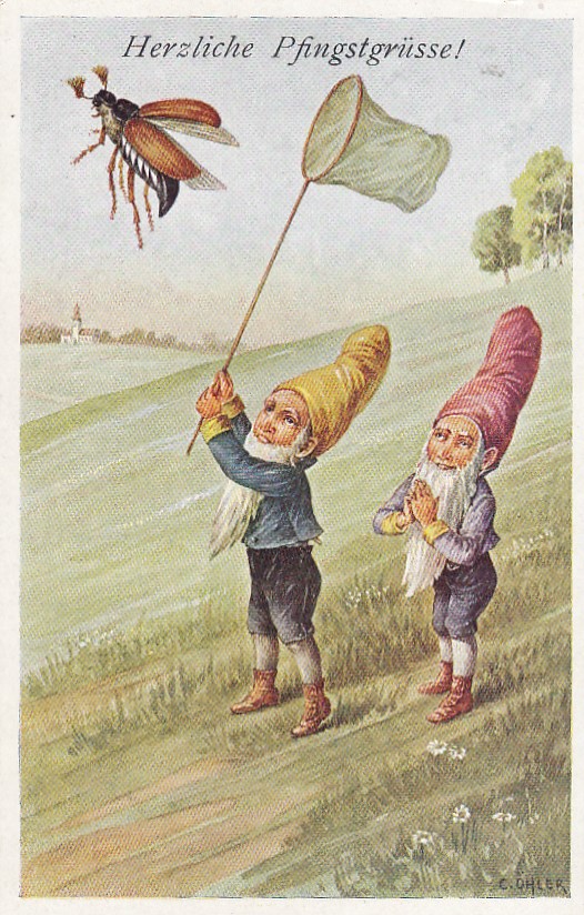 Pfingsten, Zwerge fangen Maikäfer, um 1910/20, sign. Öhler, Verlag BKW Nr 4108/4, nicht beschriftet, nicht gelaufen, nur sehr geringe Altersspuren.