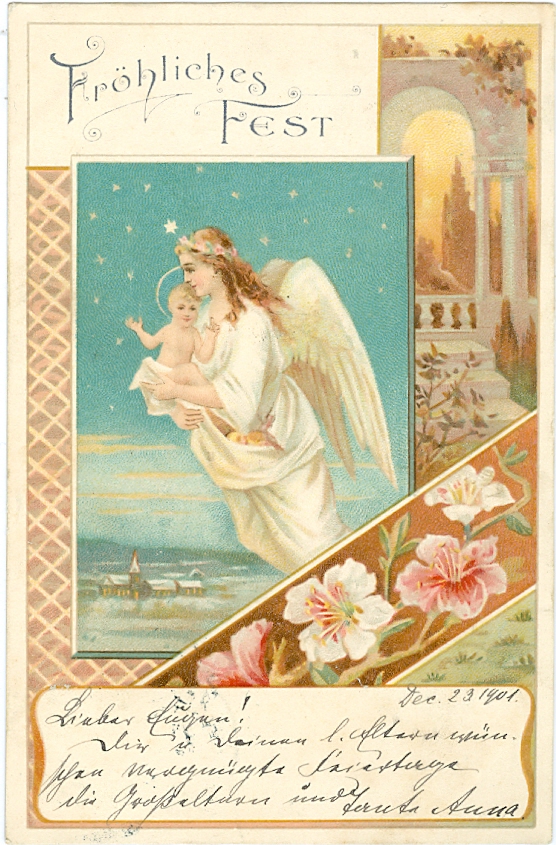 Weihnachten, Engel, Farb-Litho, 1901 postalisch gelaufen, gering eckbestossen, nur kleine Altersspuren.