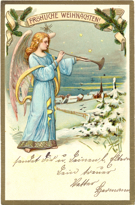 Weihnachten, Engel, Prägekarte, 1904 postalisch gelaufen, nur sehr kleine Altersspuren.