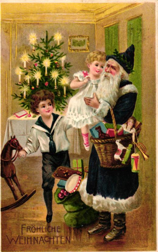 Weihnachten, Weihnachtsmann, Kinder, Spielzeug, Prägekarte, um 1910/15