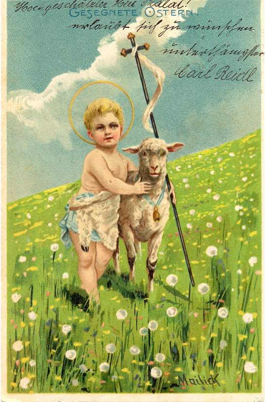 Ostern, Kind mit Lamm, sign. Mailick, 1904