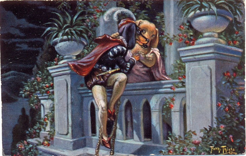 Dackel, „Lohengrin“, sign. Arthur Thiele, um 1910, T.S.N. Serie 1015, nicht beschriftet, nicht gelaufen, gering eck- u. randbestossen, leichter Bug oben links, vorderseitig kaum sichtbar, rückseitig zwei kleine Fleckchen, nicht sehr häufige Karte in insgesamt ordentlicher Erhaltung.