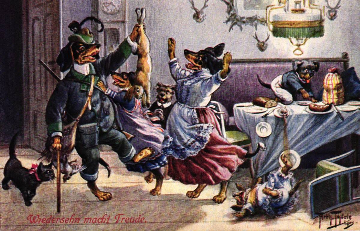 Hunde, Dackel, Jagd, erlegter Hase, sign. Arthur Thiele, TSN Serie 1175, um 1910 postalisch gelaufen, gering randbestossen, sonst ordentliche Erhaltung.