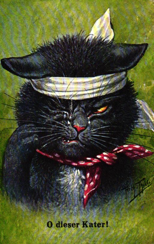 Katze, Kater mit Kopfverband, sign. Arthur Thiele, nicht beschriftet, nicht gelaufen, nur sehr geringe Altersspuren.