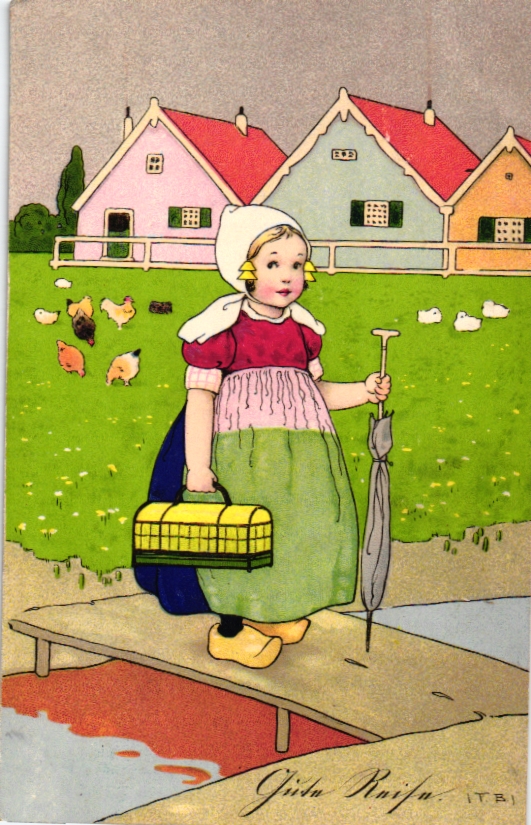 Mädchen mit Holzschuhen, sign. Fritz Baumgarten, 1917 postalisch gelaufen, einwandfreie Erhaltung.