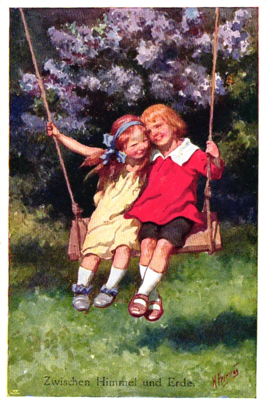 Kinder beim Schaukeln, sign. Karl Feiertag, um 1910/20