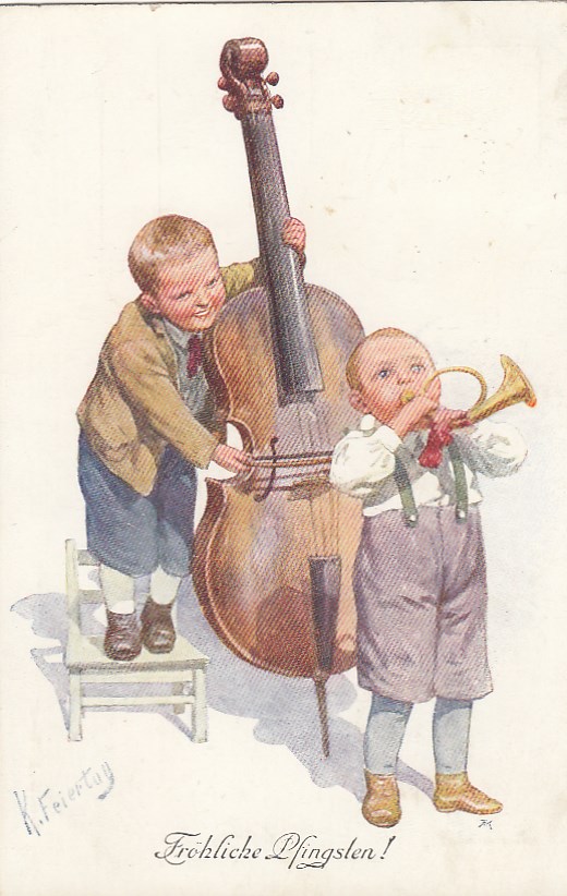 Pfingsten, Kinder mit Musikinstrumenten, sign. Feiertag, 1912 postalisch gelaufen, minimal eck- bzw. randbestossen, nur kleinere Altersspuren.
